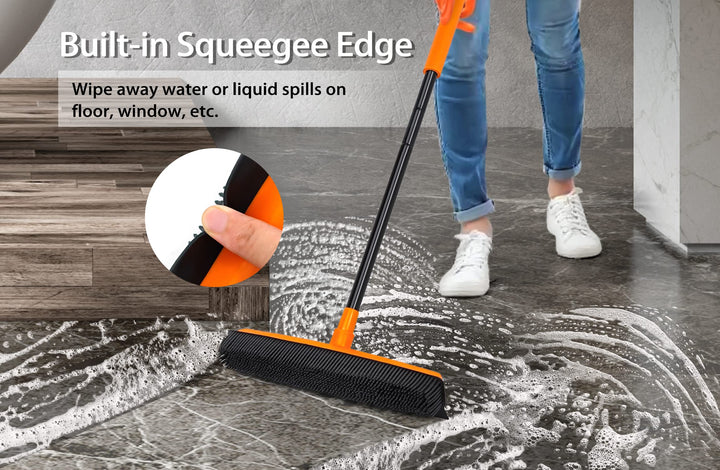 - PORTABLE & EASY TO CLEAN: The premium rubber wiper broom can last for a long time. Rinsing with tap water or soap water, it’s easy to wash away the dirt and hair from silicone bristles. When not using, hang it on the wall. It’s space-saving.