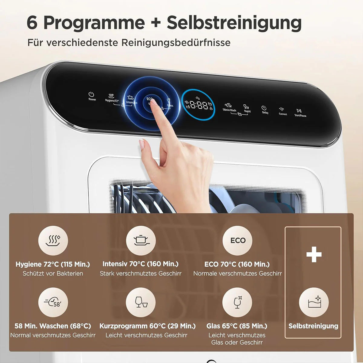 • Program: Hygiene72°, Intensive, ECO, Glass, 58 min Wash, Rapid, self-cleaning