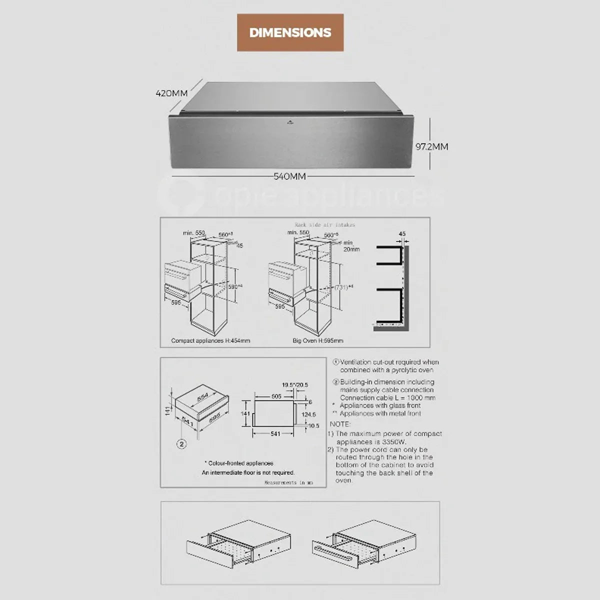 22L Stainless Steel Warming Drawer Plate pre-warming and sterilising, slow cooking function, keep food warm.