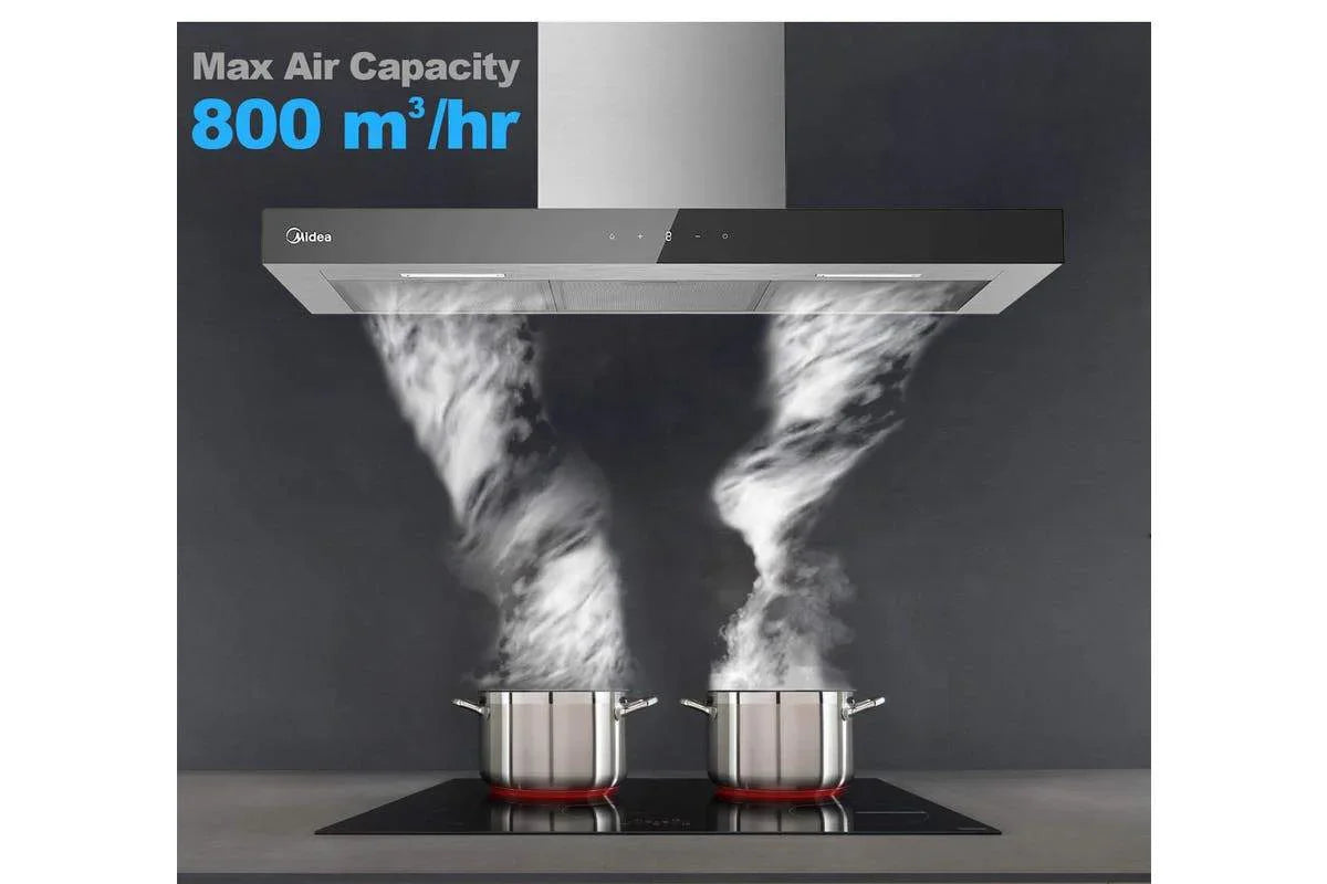 Black Glass Control Panel, Stainless Steel Body, Ducted and Recirculation