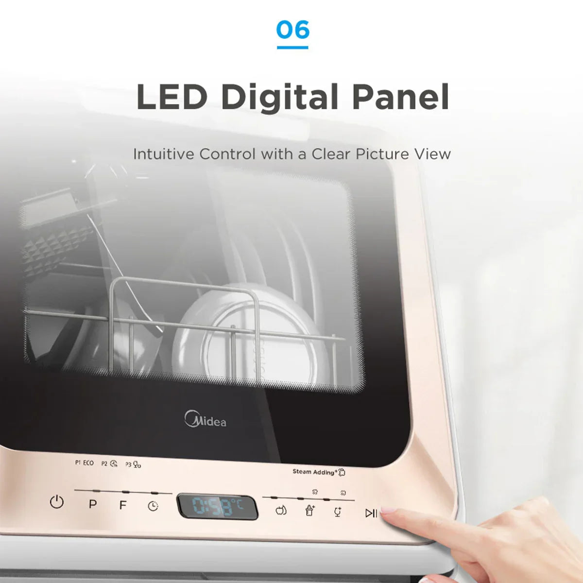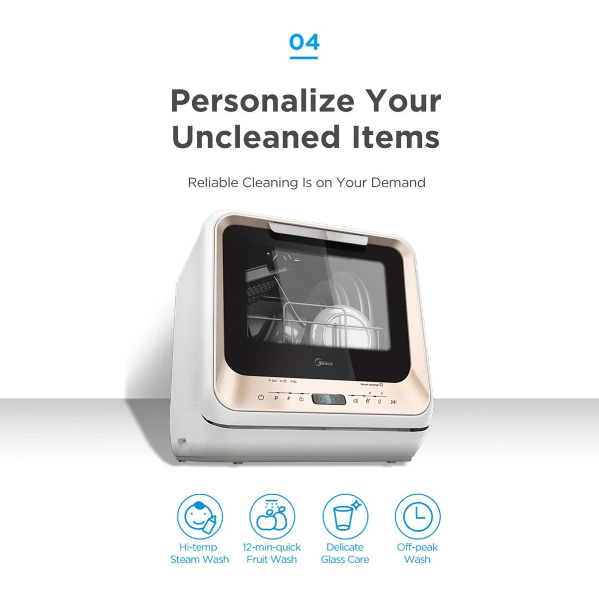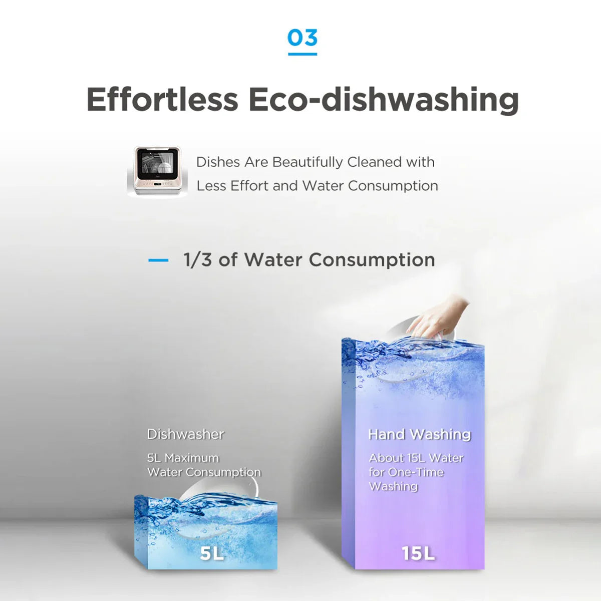 The Midea mini benchtop dishwasher is a game-changer in the world of benchtop dishwashers. Designed with an internal water tank capable of holding 5L of water, this portable appliance needs no water connection to operate. Upgraded generation with more stable quality.