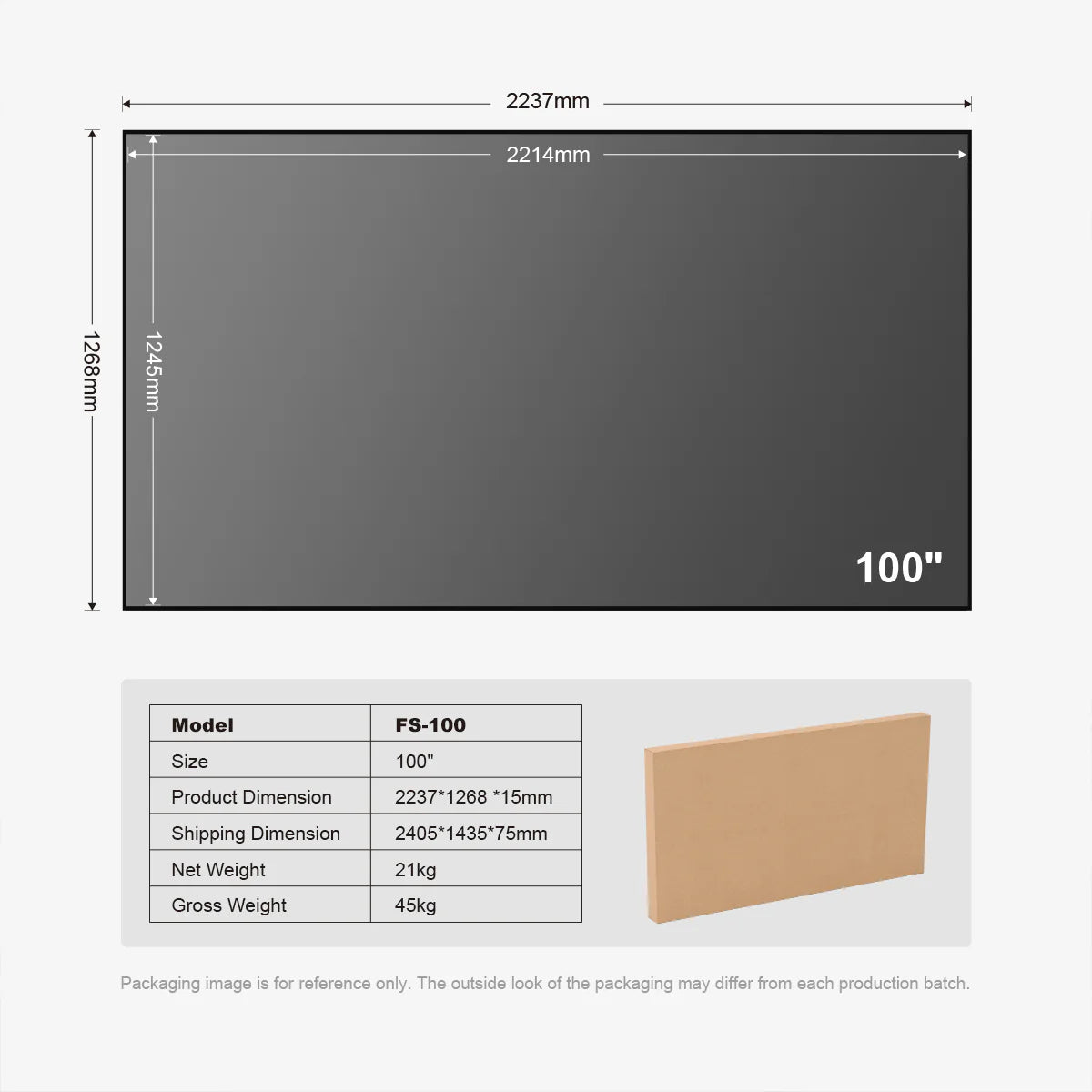 100'' | 2214x1245 | 2237x1268x15 | 2405x1435x75 | 21 | 45 |